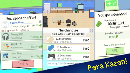 Şimdi oynamaya başlayarak ünlü bir yayıncının popülerliğini deneyimle. Hayalindeki işe başla, karakterini ve kurulumunu düzenle, farklı oyunlarda ustalaş, sponsorlar ve hayran ürünleriyle para kazan, farklı olayların içinde yer al, daha iyi bilgisayar kurulumu, hatta evcil hayvan bile satın al, sıralamada mücadele et ve başarımları aç. Şimdi bu benzersiz ve ücretsiz yayıncılık simülatöründe yayıncılığın zirvesine yükselme zamanı geldi!