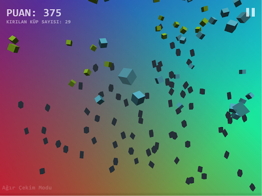 Sırayla gelen küpleri parçalamalısınız. Küplerin renkleri ve özellikleri bulunmaktadır. Tek bir küp bile kırılmadan aşağı düşerse oyun sonlanacaktır. Alıştırma modunda küp aşağı düşse bile yeni küpler gelmeye devam eder. Mavi özel küp kırıldığında ağır çekim modu devreye girecek ve küpleri kesme işlemi daha kolay olacaktır. Amaç en yüksek skoru elde etmektir. Oyun devam ederken isterseniz duraklatıp tekrar kaldığınız yerden devam edebilirsiniz.