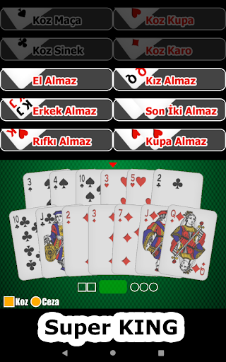 Dünyanın en çok oynanan kağıt oyunu olan King oyunu Ceza ve Koz oyunlarından oluşur, toplam 20 el oynanır ve her oyuncu üç ceza, iki koz oyunu oynar.