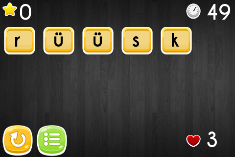 Bu basit kelime oyunu sizi saatlerce alıkoyacak! Karışık halde verilen harflerle kelimeleri oluşturun ve kelime bilginizi ölçün. Toplamda 3 adet zorluk seviyesi bulunmakta. Her zorluk seviyesi için skorunuz ayrı hesaplanırve en yüksek skoru alanlar liderler tablosunda yer almaktadır. Bu kelime oyununu oynamak için internet bağlantısına da ihtiyacınız yok.