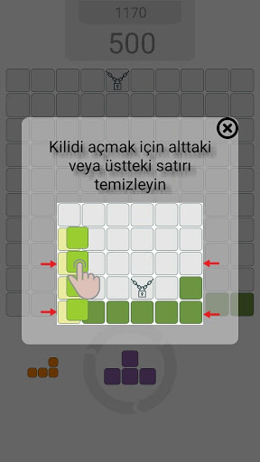 Oyunda ilerledikçe yeni gelen satırlardaki boş hücrelerin çeşitli özelliklerle geldiğini göreceksiniz. Noktalı olan hücrelere şekil koyabilirsiniz fakat siz şekli yerleştirince içindeki blok kaybolacak ve nokta sayısı azalacak. Kilitli olan hücrelere ise kilidi açmadıkça şekil yerleştiremezsiniz. Kilidi açmak için ise alttaki veya üstteki satırı temizlemeniz gerekmektedir.