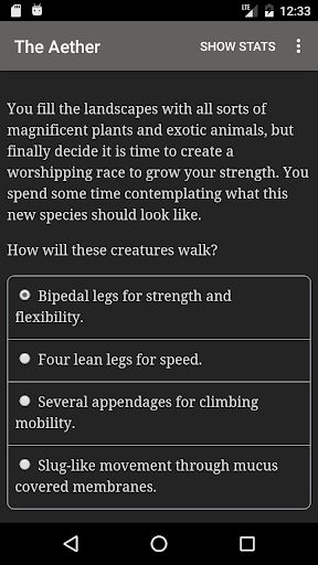 "The Aether: Life as a God" is a 60,000 word interactive fantasy novel by A. Reddwolf, where your choices control the story. It's entirely text-based—without graphics or sound effects—and fueled by the vast, unstoppable power of your imagination.