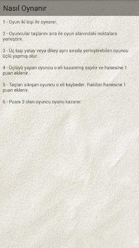 Klasik üç taş oyunudur. Bizim zamanımızda kaldırım taşına tebeşir ile çizerek oynardık. Yeni nesil kaldırım taşlarında üşütmesin diye bu oyunu yazayım dedim :) Ayrıca nostalji isteyenler için de bire bir. Bilenler bilir, bilmeyenler için oyunu kısaca anlatayım: