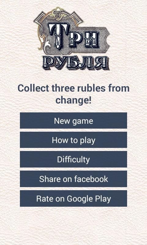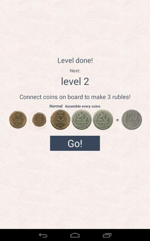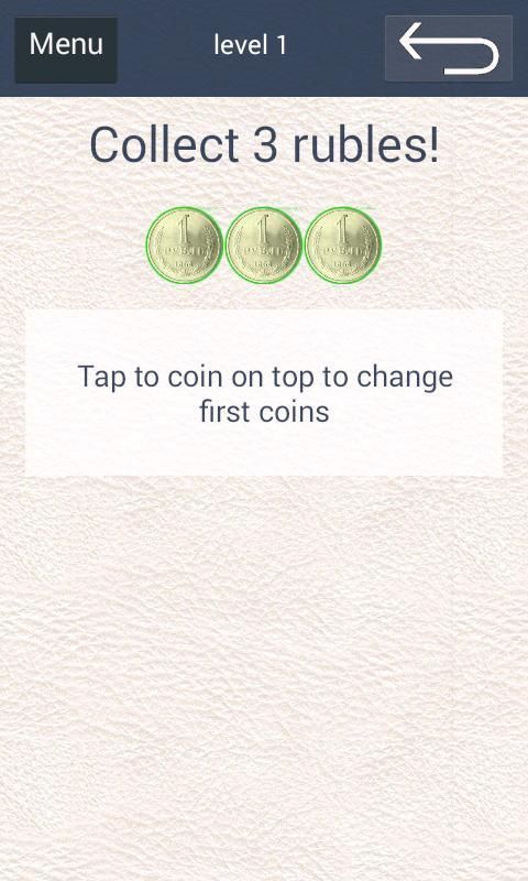 The goal is to collect three ruble coins by connecting coins and getting coin of bigger nominal.