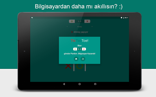 Bu bulmaca ve strateji oyununda bilgisayar ile kendinize sorun. Tic Tac Toe oyununun mantığı, göreceğiniz en iyi oyunlardan biridir ve bir oyun eğlencesi kalırken beyin eğitimine izin verir.