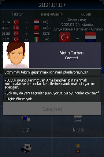 - (!) 211 milli takımlar seçmek için! Kendi, gerçek becerileri ile her! Eğer takım ile başarılı olursa, federasyon, yeni stadyumlar inşa iyi genç oyuncu geliştirme, vb kendi futbol gerçeklik oluşturun, her yıl iyileştirilmesi olacaktır!