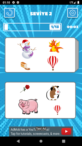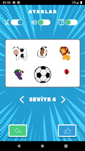 Bir sonraki seviye daha zor çünkü kartta daha fazla görüntü içeriyor. Cevabı kendi başınıza bulabilir veya bir ipucuna bakabilirsiniz.