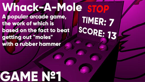 Релиз сборника мини игр в виртуальной реальности. Пока что состоит из одной культовой игры "Whack-A-Mole".