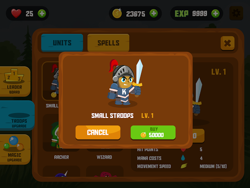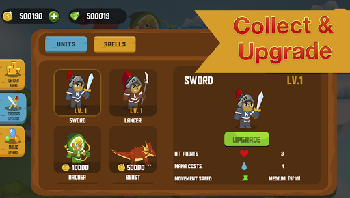 Birlikleri topla ve yükseltme Birlikleri, büyüyü ve savunmalarının yanı sıra şövalyeler, canavar, cadı ve daha fazlası.Rakiplerinizi yenmek ve kazanmak için düşman mağaralarına girin.