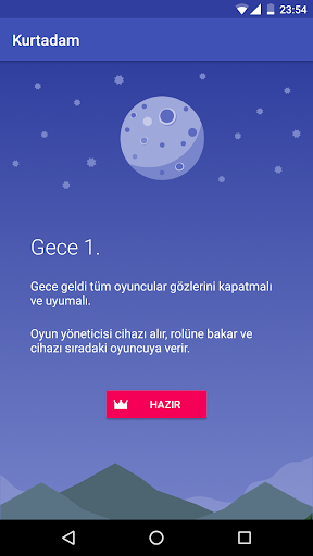 Eğer parti oyunu Kurtadam'ı oynamak istiyorsan (Mafya diye de bilinir.) ama kart setin yoksa veya kağıt kalem kullanmakla uğraşmak istemiyorsan bu uygulama tam sana göre. Basitçe, kaç oyuncuyla oynayacağını belirle, hangi rolleri kullanmak istediğini seç ve oyunu oynamaya hazırsın! Ondan sonra cihazını oyuncularla verebilirsin ve onlar da rollerini görebilir.