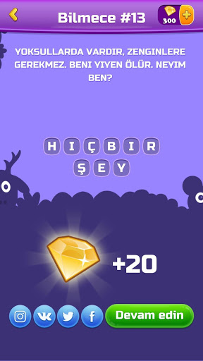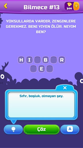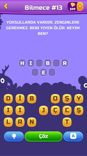 🤔 Yardımcı ipuçları: zor bilmeceleri çözerken sıkıntı yaşarsanız, ipuçlarını kullanıp çözümü bulabilirsiniz.