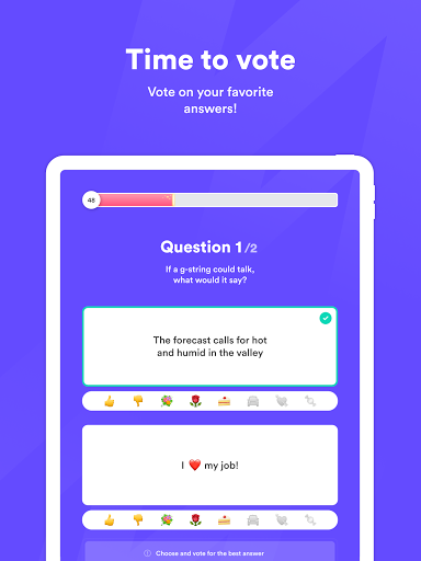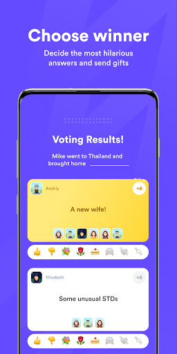 Herkes birleştiğinde, devam et ve başla. Tüm oyunculara ulaşmak için 2 soru verilecek. Her oyunda toplam 3 tur var. 2 cevabınızı yazmak için 90 saniyeniz var ve ardından oylama başlıyor. En akıllı ya da komik olduğunu düşündüğünüzün cevabına oy verin!