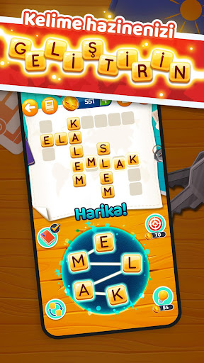 Her seviyede karşınıza üzerinde harfler olan bir çark çıkacak. Bir kelime oluşturmak için harfleri sürükleyin. Bulduğunuz her kelime ya bulmacanın bir parçası olacak ya da size para kazandıracak gizli bir kelime! Bir sonraki seviyeye devam etmek için bulmacayı tamamlayın.