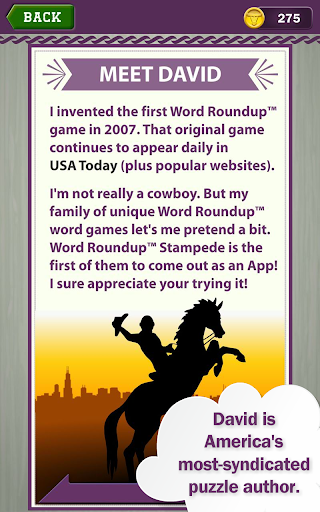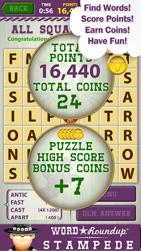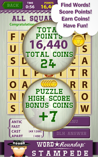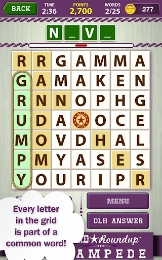 Kelime Roundup Stampede 500'den fazla nefis zorlu kelime arama bulmacası var.