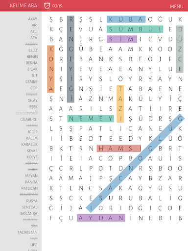 Kelime arama oyunu dünyaca popüler gizli kelimeleri tablodan bulma oyunudur. Keliem bulma oyununu artık kalem ve kağıt ile oynamanıza gerek yok. Dinamik kelime bulmaca oluşturma özelliğiyle sınırsız sayıda bulmaca çözebilirsiniz.