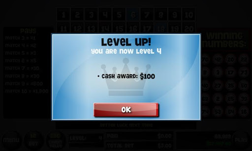 Oynamak için XP kazanın, rakamlar ve daha fazla oyun oynayabilir. Tesviye Yukarı ek oyun özelliklerinin kilidini açar, bonus maç kristallerinin kilidini açar, maksimum bahisleri arttırır, daha fazla sayı seçme yeteneğini ve daha fazlasını verir! Bonus oyunu Nakit Ödülleri devam eden oyun için verilmektedir.