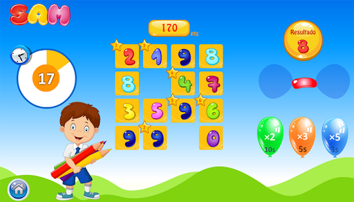 Bu, 4 temel işlemin 3'ünü kullanarak zihinsel hesaplamadaki becerilerin geliştirilmesini sağlayan 10 yıl (10) öğrencilere yönlendirilen bir oyundur: ekleme, çıkarma ve çarpma (bu, sadece 1 ila 6).Oyunun amacı, çerçevedeki tüm sayıları ortadan kaldırmaktır.Her adımda, verilen işlemi (çıkarma, ekleme veya çarpma) kullanarak belirtilen sonucun izin verdiği iki numaraya tıklayın.