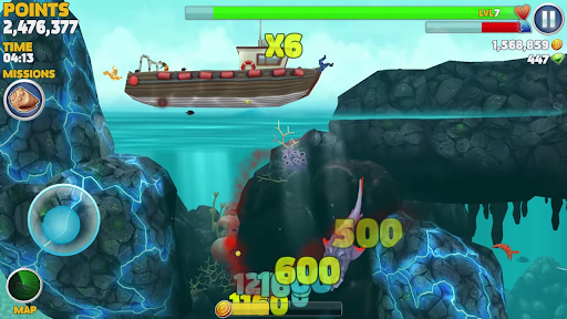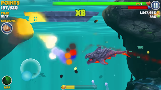 Hungry Shark Evolution is an exciting aquatic adventure. Hungry Shark Evolution features a diverse range of aquatic creatures, different currencies and a wide range of treasures to be found. As you progress through the game, you will unlock new sharks, fight a boss, and encounter even more weird and wonderful