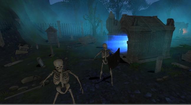You can move freely through VR graveyard, using crossbow as your main weapon. At morning all unholy creatures will fall asleep, but can you survive the night?