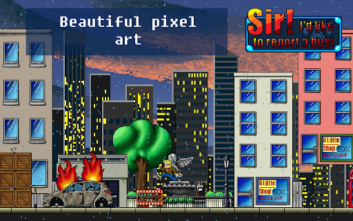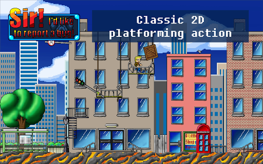 "The addictive gameplay, fantastic retro style, and crazy storyline make Sir! I’d Like To Report a Bug a must play game for all fans of challenging platformers." – Super Game Droid