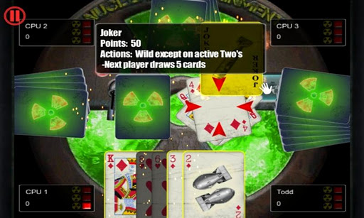 NUKE komşunuz, hem stratejik becerilerini hem de reflekslerini, başka bir kart oyunu gibi teste getiriyor.İlk önce tüm kartlarından kimin kurtulabileceğini görmek için diğer üç oyuncuya karşı yarışın!15 ödülü kazanın ve oynatıcınızı sonsuz saatlerce heyecan verici oyun oynamak için kaydedin.
