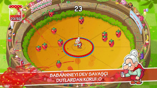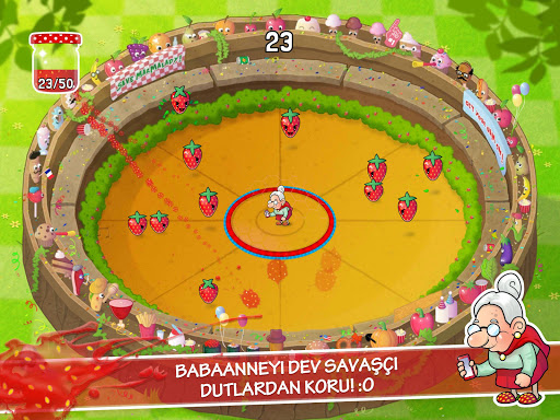 Savaşçı dutlar, babaanneyi bahçesinden kaçırdı ve onu arenanın ortasına attı - babaannenin yardımına ihtiyacı var! Ona saldıran çilekleri ezerek reçel yap! Yeterince reçel yaptığında, babaanne akıllı telefonunu kullanarak bazı güçlendiriciler için mesaj atacak! Reçel dolu bu maceraya hemen atılın!