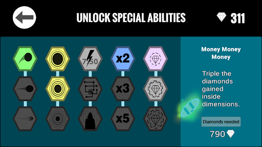 Improve your character inside dimensions by collecting powerups. As you progress the dimensions become more difficult. Boost your character by unlocking special abilities. How many dimensions can you visit? Compare your skills to your friends and other players online.