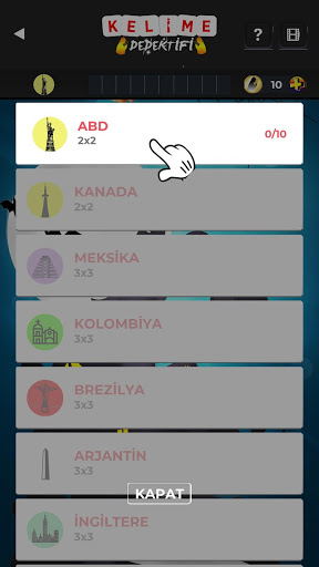 2x2 ile başlayıp 7x7 puzzle' a kadar devam eden kelime bulmaca oyunumuzda kaydırarak bulacağınız kelimeler ile dedektif olmaya hazır olun!