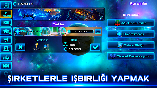 İşi farklı yönlerde açın: cevher madenciliği, gıda üretimi, lüks tedarik ve diğerleri. İşletmeleri yükseltin ve uzay işi imparatorluğunuzu yaratın. Daha fazla fırsat elde etmek için ofisinizde departmanlar açın. Otomasyonu geliştiren kendi yapay zekası, atıl gelir dahil karınızı da artırır.