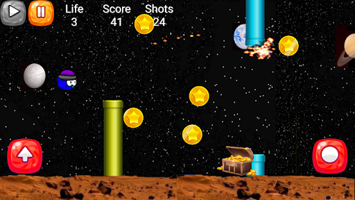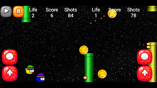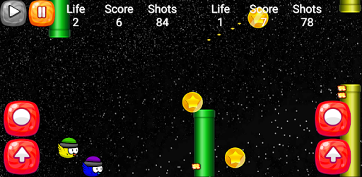 An action game set in various scenarios, possibility to play in two. Use the red buttons to shoot and jump, collect coins, shoot the pipes to get points, try not to waste your shots because at the end of each level you will have to fight!