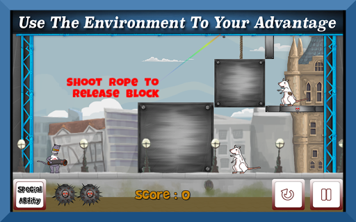 There’s a zombie rat infestation and you’re the only Kool Kat that can stop them. Use your bazooka to ricochet spiked mace ball off walls, cut ropes with guillotine axes, and roll cactus, plus many more effective ways of ridding the world of the Z-Rat problem. Line up your shots and let go to shoot but plan your shots because you have limited ammo. If you do find yourself in a pinch use the special ability to zap the rats back to their graves. So get out there and save the world before it’s to late.
