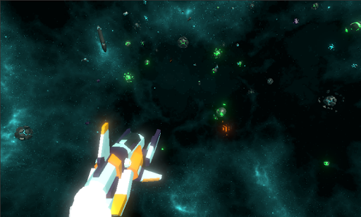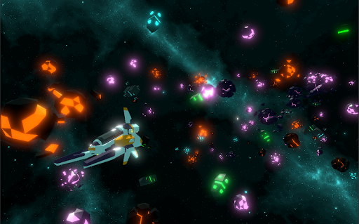 cockpit in a dangerous mission trough a gigantic asteroid field for collecting strange and mysterious alien artifacts!