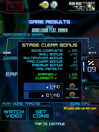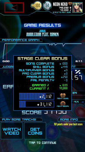 Players can experience Neon FM™ absolutely free by leveling up and earning silver coins, playing free music that rotates weekly, watching videos to earn gold coins, or completing offers from our partners for tons of free gold coins at once! Want to quickly jumpstart your Neon FM™ career, collect the latest music, and beat the hidden locked tracks? Gold coins can also be purchased directly through the app. Both silver and gold coins can be used for individual plays of tracks, but gold coins can unlock songs early, purchase songs for unlimited free plays, buy packs of songs at a discount, and customize player accounts (in future updates).