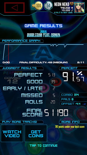 Completely customize your experience with a litany of options: change the game speed, shrink the note size, swap colors, invert the screen, sort the enormous music library by different criteria, and more. Numerous control schemes allow for comfortable play even on small screens as you tap tap to the beat. Play online games or by yourself. Calibrate your timing manually or through the automatic wizard. Never has a mobile rhythm game given more control to the player!