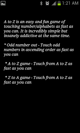• Tap the alphabets from A to Z (or Z to A) as fast as you can.