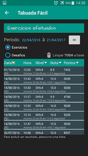 Then you can check the results of the exercises and challenges performed in your training to check their progress.