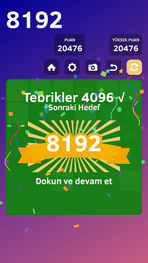 Artık sonsuz mod yok, bunun yerine Sonraki Hedefiniz var. 2048 puan kazanırsanız, sonraki hedef 4096. 4096 puan kazanırsanız, sonraki hedef 8192 vs.