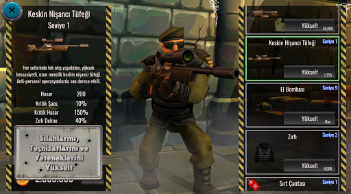 Kazandığın oyun içi paralar ile yeteneklerini, silahlarını ve teçhizatlarını seviye 9’a kadar yükseltebilirsin.