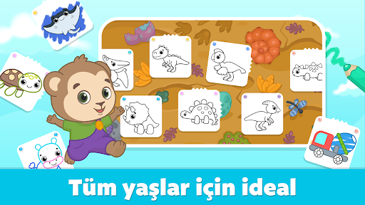 Çocuklar karalamayı ve boyamayı sever ve bebekler için hazırlanan bu çizim oyunu, boyanacak ve çizilecek en iyi ücretsiz reklam uygulamalarından biri. 2-6 yaşlarındaki küçük çocuğunuz, noktalı çizgilerin izini sürerek farklı resimler çizmeyi öğrenecek, çocuklar için sanat oyunlarımızla sanat eserlerini renklendirecek. Ayrıca, resimlerini hayata geçirmenin tadını çıkaracaklar.