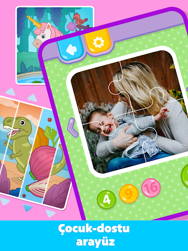 Çocuk-dostu arayüzü çocuğunuzun sezgisel biçimde uygulamada dolaşmasına olanak verir. Çocuklar için yapbozlar mantıksal düşünmeyi, motor-becerilerini, problem çözme yeteneğini ve hayalgücünü geliştirir. Aynı zamanda bu çocuk oyunlarında reklam yoktur. Yani ortam, küçüklerimiz için tamamen güvenlidir.