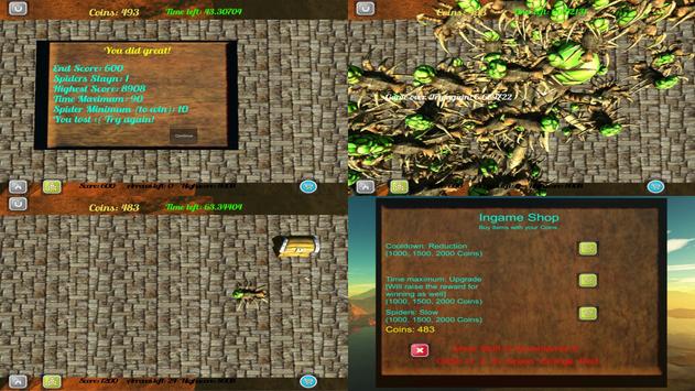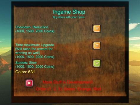 - You have limited time for every level, but a minimum of spiders that you have to kill to win. If you win, you get an extra amount of coins.