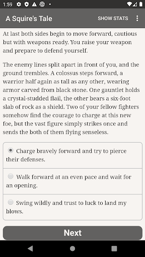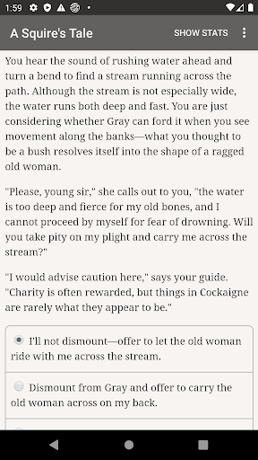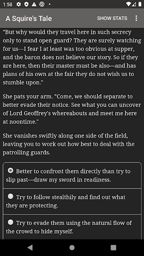 "A Squire's Tale" is a 150,000-word interactive fantasy novel by Benjamin Appleby-Dean, where your choices control the story. It's entirely text-based—without graphics or sound effects—and fueled by the vast, unstoppable power of your imagination.