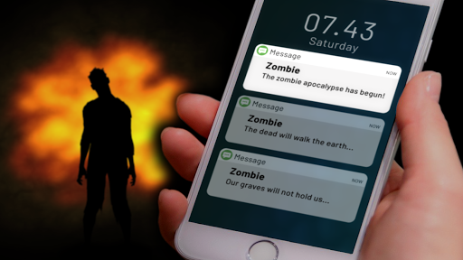 The zombies are hungry and searching for their favourite food - human flesh! Receive calls and text messages from the undead as they track you down before giving you a frightening jumpscare, leaving you with a fake smashed screen!