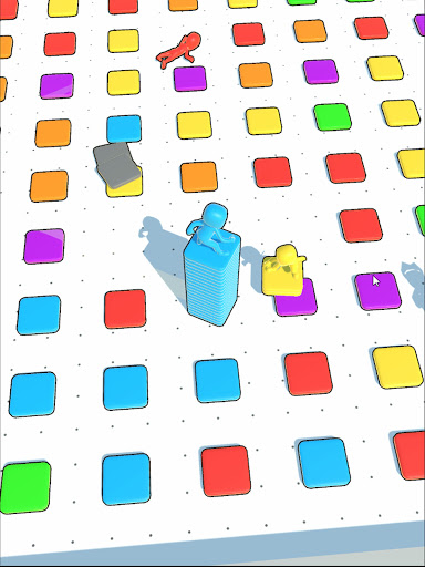 stack same colors, get high, hit others with shorter stack and make your way to reach finish line and win the race.