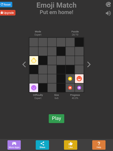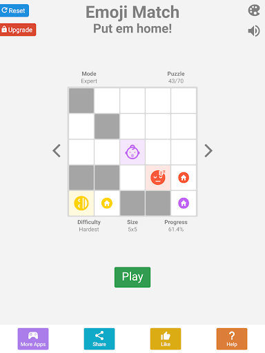 Bu oyun iki oyun modu temel ve uzman ve Her mod, yüzlerce bulmacayla üç bulmaca panosu (4x4 ila 6x6) içerir. Temel mod, tek renkli emoji (3'e kadar emojiye) içerir ve uzman modu çok renkli emoji içermektedir (3 emojiye kadar).