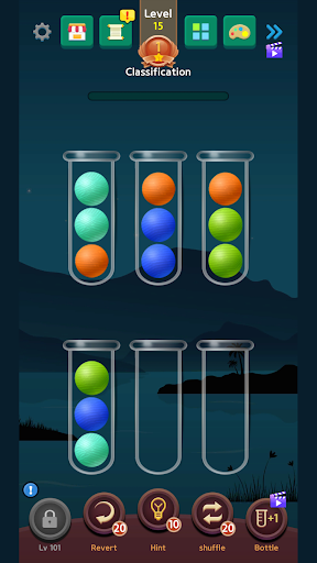🔴 When balls of the same color are sorted into a single bottle, you win!