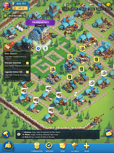 Uçaklar ve tanklar yapmak için üsler kur. Müttefiklerinle taktiksel takaslar yaparak, haritadan kaynak toplayarak, stratejik destekler ve ekonomi istatistiklerini geliştirecek becerileri kullanarak bir şehir ve medeniyet kur.