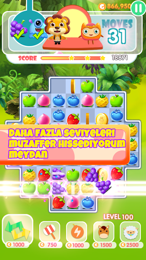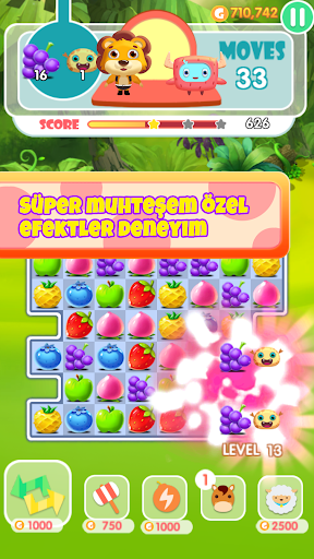 Meyve Crush meyve oyunu, sevimli aslan macera teması! Size taze ve mükemmel zorlukları getir!