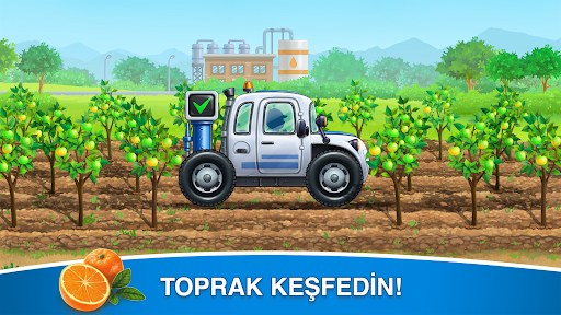 Çocuklar, yapbozlar gibi parçalardan tarım kamyonlarını bir araya getiriyor ve sulu bir portakal mahsulü yetiştirmeleri için onları bir çiftlikte kullanıyor. 2 ila 5 yaş arası çocuklar çiftlik simülatöründe çalışacak ve portakal ağaçlarıyla ilgilenecek! Çocuklar portakal tohumlarını toprağa koyar, sular ve gerçek zamanlı olarak büyümelerini izler!