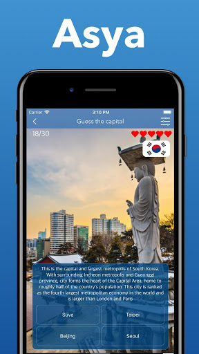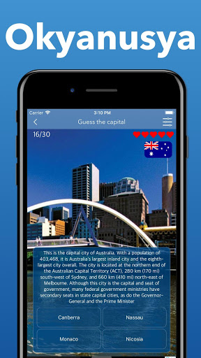 Bu uygulamada, tüm sorular için ipuçları bulacaksınız - ücretsiz! İpuçları, bunlar farklı ülkelerin şehirleri ve başkentleri hakkında ilginç gerçekler, onların yardımıyla şehirler ve ülkeler hakkında çok şey öğrenebilirsiniz!